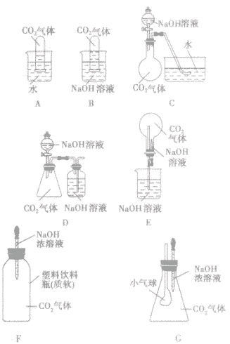 | F | 將膠頭滴管中的氫氧化鈉溶液擠入軟塑料瓶 | 塑料瓶變癟 |