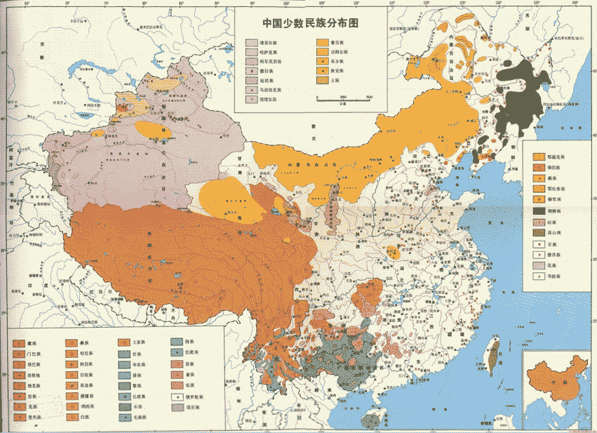 少數(shù)民族分布圖:
