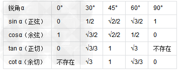 銳角∠A的tan值和sin值隨著角度的增大而增大,cos值隨著角度的增大而減小。