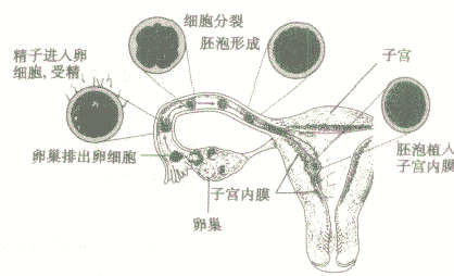 卵細胞由卵巢排出以后,進入輸卵管。精子依靠本身的運動,可以經(jīng)過子宮腔到達輸卵管,這是如果精子和卵細胞相遇,就可能形成受精卵。受精卵形成之后經(jīng)過卵裂形成胚泡,胚泡一定到子宮內(nèi),最終植入子宮內(nèi)膜。