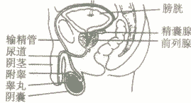 包括內(nèi)生殖器和外生殖器二個部分。內(nèi)生殖器由生殖腺(睪丸)、輸精管道(附睪、輸精管、射精管和尿道)和附屬腺(精囊腺、前列腺、尿道球腺)組成。外生殖器包括陰囊和陰莖。其中睪丸產(chǎn)生精子。