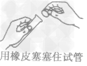 | 容器口塞橡皮塞 | 左手拿容器,右手拿塞子,慢慢轉(zhuǎn)動,塞進容器口。切不可把容器放在桌子上使勁塞進,以免壓碎容器 | ![]() |