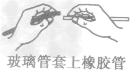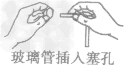 | 玻璃管插入 (帶孔)橡皮塞 | 左手拿塞,右手拿管,一端潤濕,轉(zhuǎn)動插入 | ![]() |