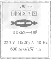 | 銘牌和意義 | ![]() | “220V”是說這個(gè)電能表應(yīng)該在220V的電路中使用;“10(20)A是說這個(gè)電能表的額定電流是10A,在短時(shí)間內(nèi)電流允許大一些,但不能超過20A;“50Hz”是說這個(gè)電能表在50Hz 的交流電路中使用; “600Fevs/kW·h”是說接在這個(gè)電能表上的用電器,每消耗1kW·h的電能,電能表上的轉(zhuǎn)盤轉(zhuǎn)過600轉(zhuǎn) |