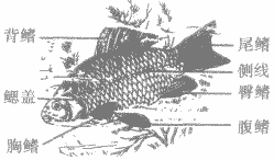 在脊椎動物中,魚的種類和數(shù)量是最多的,現(xiàn)存的魚類約有2萬多種。根據(jù)魚類生活水域的不同可分為淡水魚類和海洋魚類。我國有豐富的魚類資源,我國的淡水魚類約有800種,常見的有鯽魚(如圖)、鯉魚、鰱魚、青魚、草魚、鳙魚等,我國的海洋魚類已知的有1600多種,常見的有帶魚、大黃魚等。