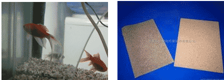 2. 選取材料:兩條活魚,紗布,木板,魚缸(水池)。