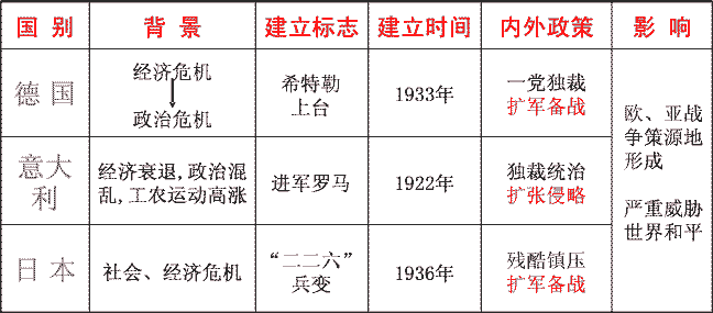 對(duì)比三個(gè)法西斯國(guó)家的相關(guān)信息: