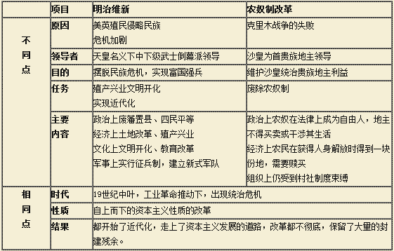 日本明治維新同俄國農(nóng)奴制改革的對比: