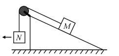 19.如圖,一粗糙斜面固定在地面上,斜面頂端裝有一光滑定滑輪。一細(xì)繩跨過滑輪,其一端懸掛物塊N。另一端與斜面上的物塊M相連,系統(tǒng)處于靜止?fàn)顟B(tài),F(xiàn)用水平向左的拉力緩慢拉動(dòng)N,直至懸掛N的細(xì)繩與豎直方向成45°。已知M始終保持靜止,則在此過程中