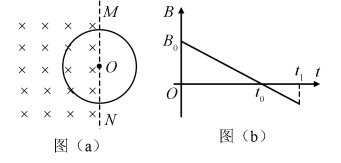 20.空間存在一方向與直面垂直、大小隨時(shí)間變化的勻強(qiáng)磁場,其邊界如圖(a)中虛線MN所示,一硬質(zhì)細(xì)導(dǎo)線的電阻率為ρ、橫截面積為S,將該導(dǎo)線做成半徑為r的圓環(huán)固定在紙面內(nèi),圓心O在MN上。t=0時(shí)磁感應(yīng)強(qiáng)度的方向如圖(a)所示:磁感應(yīng)強(qiáng)度B隨時(shí)間t的變化關(guān)系如圖(b)所示,則在t=0到t=t1的時(shí)間間隔內(nèi)