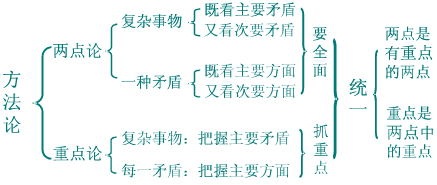 (3)反對(duì)錯(cuò)誤傾向:辯證法的兩點(diǎn)論是有重點(diǎn)的兩點(diǎn)論,而不是均衡論,重點(diǎn)論是看到兩點(diǎn)中的重點(diǎn),而不是一點(diǎn)論。我們要反對(duì)形而上學(xué)的一點(diǎn)論和均衡論。