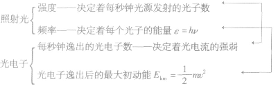 ②入射光強(qiáng)度→決定單位時(shí)間內(nèi)接收的光子數(shù)→決定單位時(shí)間內(nèi)發(fā)射的光電子數(shù)。即: