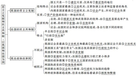 君主立憲制和民主共和制:以英國(guó)和法國(guó)為例:
