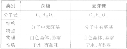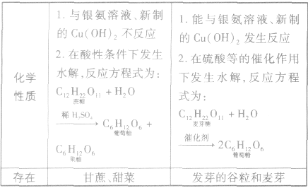 分子是為C12H22O11,與麥芽糖互為同分異構(gòu)體。蔗糖水解生成一份子葡萄糖和一份子果糖。蔗糖存在甘蔗和甜菜中。蔗糖分子中沒有醛基,不能與銀氨溶液和新制氫氧化銅懸濁液反應,為非還原性糖。