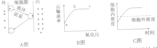 (2)B圖中,a點(diǎn)表示氧氣濃度為零時(shí),也可發(fā)生主動(dòng)運(yùn)輸(所需能量來自無氧呼吸);ab段表示隨氧分壓的升高,物質(zhì)運(yùn)輸速率逐漸增加,此時(shí),限制物質(zhì)運(yùn)輸速率的直接因素是能量;bc段隨氧分壓的升高,物質(zhì)運(yùn)輸速率不再增加,此時(shí)限制物質(zhì)運(yùn)輸速率的直接因素是細(xì)胞膜上載體蛋白的數(shù)量。