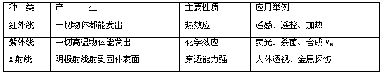 3、紅外線、紫外線、X射線的主要性質(zhì)及其應(yīng)用舉例。
