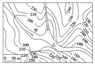 (1)確定水庫庫址與大壩壩址水庫庫區(qū)宜選擇在河谷、山谷地區(qū)或選在口袋形的洼地、小盆地,這些地區(qū)庫容大,有較大的集水面積(如上圖中甲處)。水庫壩址則應(yīng)選在河谷、山谷地區(qū)的最窄處或口袋形的洼地、小盆地的袋口處(如上圖中乙處),確定壩高時應(yīng)依據(jù)出口處等高線的高程(如上圖中應(yīng)選擇200米高程),壩長可依據(jù)比例尺計算得出。