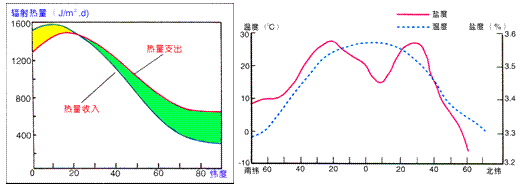 1、海水熱量的收入和支出:收入主要是太陽輻射,支出主要是海水的蒸發(fā)。收支基本平衡,但不同季節(jié),各個海區(qū)收支并不平衡,低緯度海區(qū)收入大于支出,中高緯度海區(qū)支出大于收入