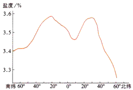 從南北半球的副熱帶海區(qū)分別向兩側(cè)的高緯度和低緯度遞減。(如下圖)