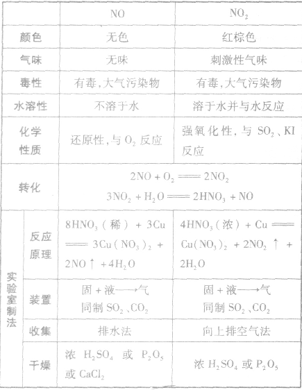 NO、NO2的性質(zhì)、實(shí)驗(yàn)室制法的比較: