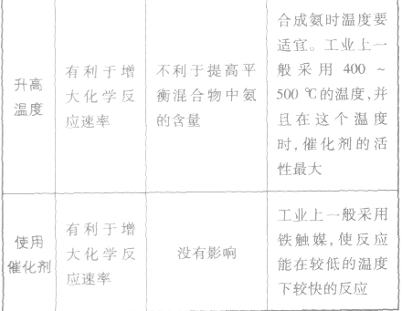 (5)合成氨的反應為放熱反應,降低溫度促使平衡向有移動,有利于N2、H2轉化為NH3;但降溫必然減緩了反應速率,影響單位時間產(chǎn)率。生產(chǎn)中將二者綜合考慮,既要保證N2、H2的轉化率,又要保證較快的反應速率,只能選擇適中的溫度400~500℃左右。應注意該溫度為催化劑活化溫度,低于此溫度,催化劑不起作用。