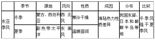 季風(fēng)環(huán)流是大氣環(huán)流的一種重要表現(xiàn)形式。亞洲東部和南部的季風(fēng)環(huán)流最為典型。