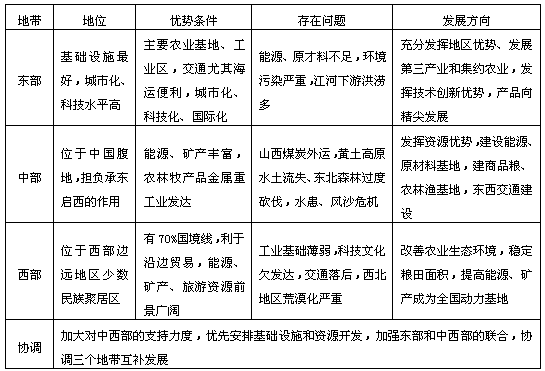 三個經(jīng)濟地帶的特征、差異與發(fā)展: