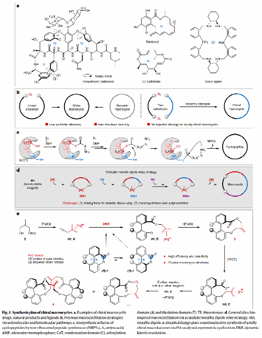 手性大環(huán)化合物作為藥物和功能材料的關(guān)鍵結(jié)構(gòu)單元,其合成一直是有機(jī)化學(xué)領(lǐng)域的重大挑戰(zhàn)。以"人類(lèi)抗生素最后防線(xiàn)"萬(wàn)古霉素為例,其核心結(jié)構(gòu)正是由軸手性聯(lián)芳基單元與大環(huán)內(nèi)酯構(gòu)成。傳統(tǒng)合成方法普遍面臨環(huán)化效率低、手性控制難等瓶頸問(wèn)題,嚴(yán)重制約了這類(lèi)化合物的開(kāi)發(fā)應(yīng)用。