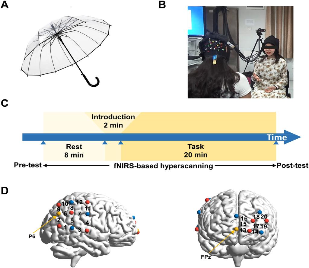 基于長期以來在創(chuàng)造力與認(rèn)知神經(jīng)方面的工作基礎(chǔ),趙慶柏教授課題組采用基于功能性近紅外光譜成像儀(fNIRS)的超掃描(hyperscanning)技術(shù),從多腦功能整合的視角探究自然交流情境下團(tuán)體創(chuàng)造任務(wù)的獨特神經(jīng)模式。通過衡量創(chuàng)造性任務(wù)與非創(chuàng)造性任務(wù)(一般任務(wù))的人際神經(jīng)同步(interpersonal neural synchronization, INS)差異來考察團(tuán)體創(chuàng)造中小組成員的腦間神經(jīng)活動特點。