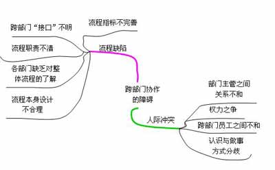 圖1 第一小組對“跨部門協(xié)作”障礙與原因分析思維導(dǎo)圖