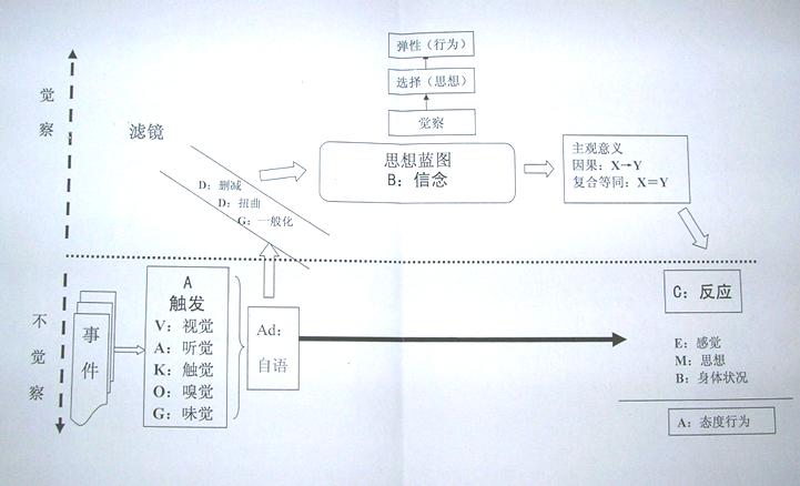 回答:那是我們后面的內(nèi)容。比如說,檢定語言模式就是用來還原數(shù)據(jù)的。比如說,我們的信念改變技巧就是用來處理那些限制性信念。還有次感元就是用來改變內(nèi)在表像系統(tǒng)中的經(jīng)驗元素的。所以,當(dāng)改變這個過程中的任何一個環(huán)節(jié)的東東的時候,都可以令到最后的行為改變。