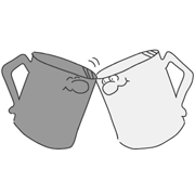 下圖是兩個水杯、兩只蘑菇,請設(shè)計一個場景,水杯和蘑菇是場景中的主體,你能想像出這個場景是什么樣的嗎?越奇特越好。
