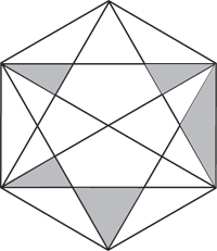 2、下圖中的六邊形木板被木匠勾了很多墨線,有陰影的小塊是木匠預(yù)備裁掉的。用30秒記住這些陰影塊,然后翻頁尾,僅憑記憶在空白木板上涂出陰影塊。