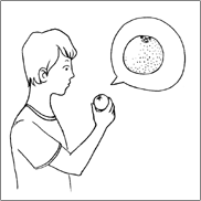 1、凝視手中的橘子(或其他物品),反復(fù)、仔細地觀察它的形狀、顏色、紋理脈絡(luò);然后用手觸摸它的表面質(zhì)地,看是光滑還是粗糙,再聞聞它有什么氣味。
