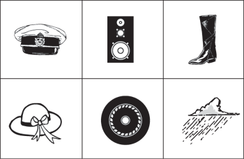 3、下面的圖中有6個童話中出現(xiàn)的物品,請在1分30秒內(nèi)記住它們在圖中的位置,然后翻到頁尾,僅憑記憶請這些物品對號入座。(提示:要記住多幅圖像和它們的位置,乍看很難,其實不然。在初做這類題時,設(shè)法把每幅圖像擬人化,然后將圖像串成一個生動的故事,記住它們就很容易了。照相記憶能力較強時,看到的每幅圖像都會自動活起來,在腦海中組成栩栩如生的故事場景。)